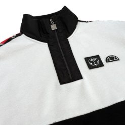 Tomorland x Ellesse Fleece-Sweatshirt. Werten Sie Ihre Kaltwettergarderobe mit diesem weichen Vintage-Pullover auf, Teil unserer exklusiven Zusammenarbeit mit Tomorrowland Winter. Erfrischt mit einem zweifarbigen Design, verfügt es über das verspielte, aber auffällige Schmetterlingsband an den Ärmeln, einen gebrandeten Reißverschlussschieber und die ikonischen Ellesse- und Tomorrowland-Logos auf der Vorderseite. Dieses Teil ist ein Must-Have auf und abseits der Piste!